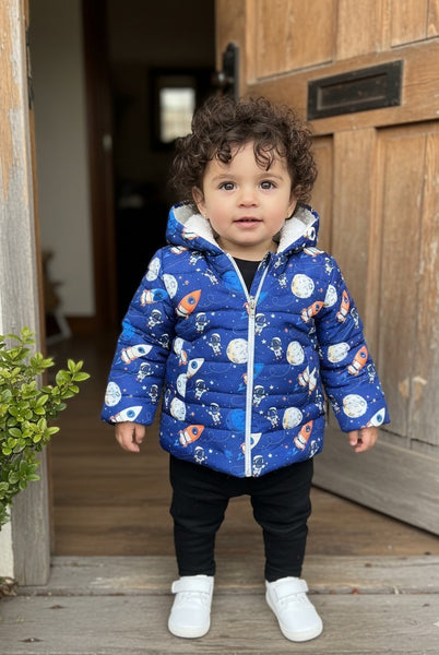 Galaxy Vibes: Blast off into style with a stunning galaxy print that covers the entire jacket. This eye-catching design will make your baby the center of attention wherever they go.